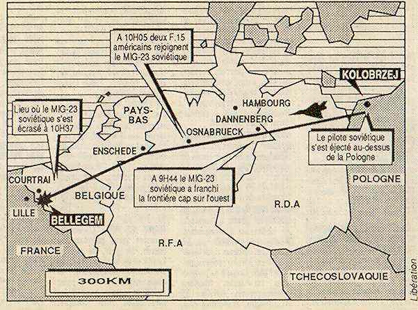 4 июля 1989 года в густонаселенном районе Бельгии, около городка Куртрэ, произошло драматическое событие, потрясшее местных жителей и изумившее авиационных специалистов всего мира. Ясным безмятежным днем частный дом семейства Делауэр протаранил боевой самолет ... с советскими опознавательными знаками! От полученных травм скончался бельгийский юноша. Летчик не пострадал, поскольку за час до трагедии катапультировался из истребителя и благополучно приземлился на польской земле. Из Польши в Бельгию МиГ-23 прилетел без пилота!