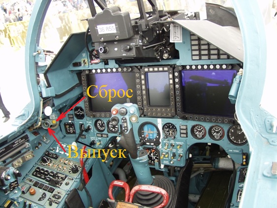 В су-27 кнопка парашюта находится на левом борту кабины под переплётом фонаря.