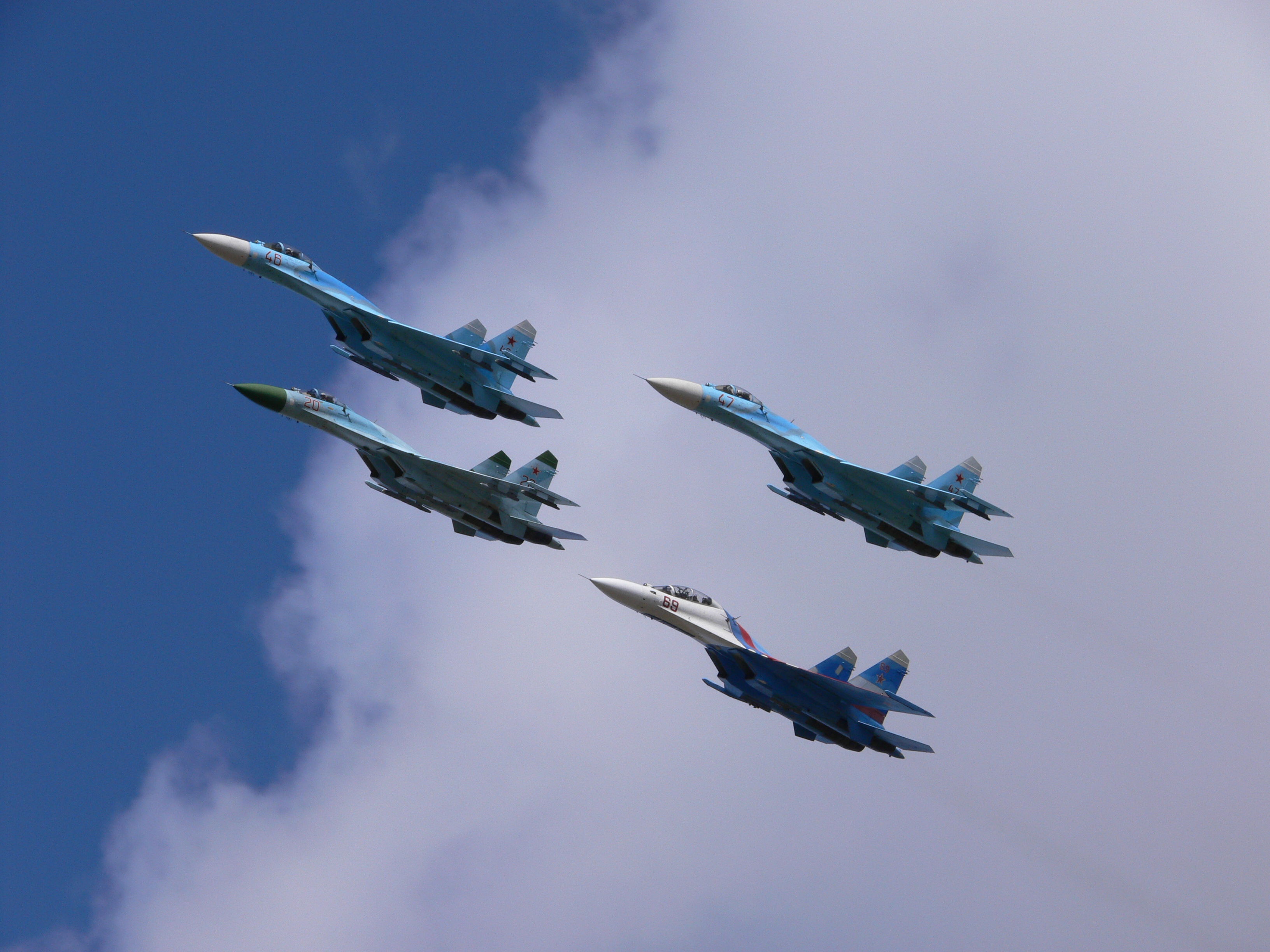 Всегда интересно было, для чего Липецкие рисуют на нижней части фюзеляжа псевдо-фонарь? Помню как-то читал, что такие эксперименты проводились заграницей, но от них отказались, т.к. лётчики-ведомые часто "терялись" и не могли понять что делает их ведущий, потому вскоре от такого отказались.