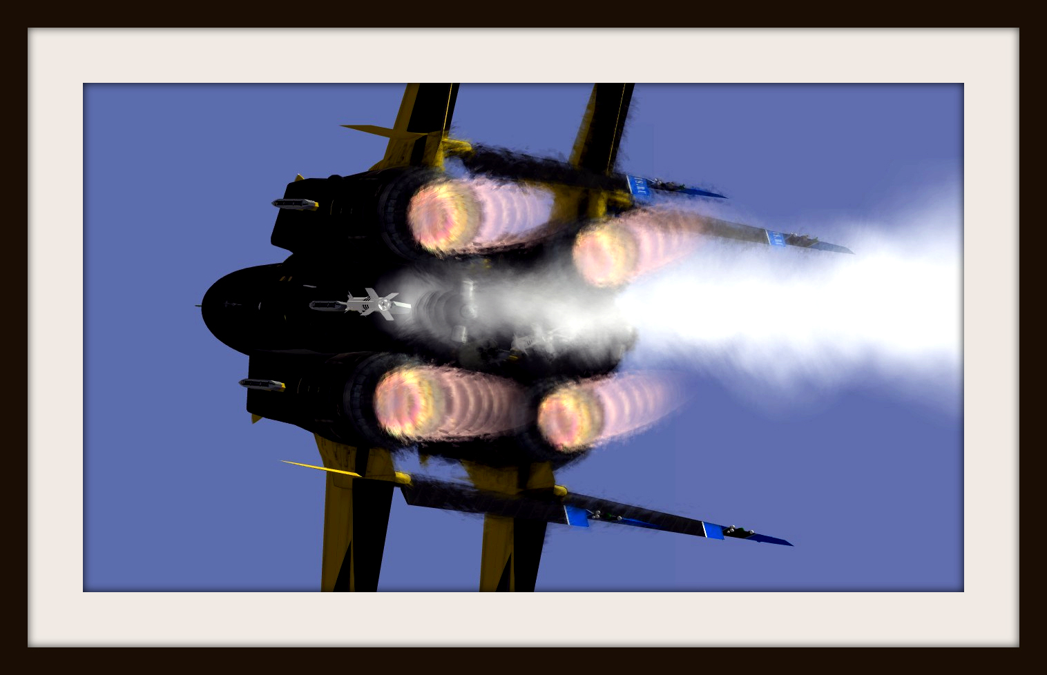 During one of our practises last week, we trained in two seperate groups. Group one was training for the general formation routine of our show whilst group two was training the afterburner takeoff barrel roll. As leader of the 4ship, I looked over my shoulder while initiating the right barrel roll when I saw something big passing us at high speed.......